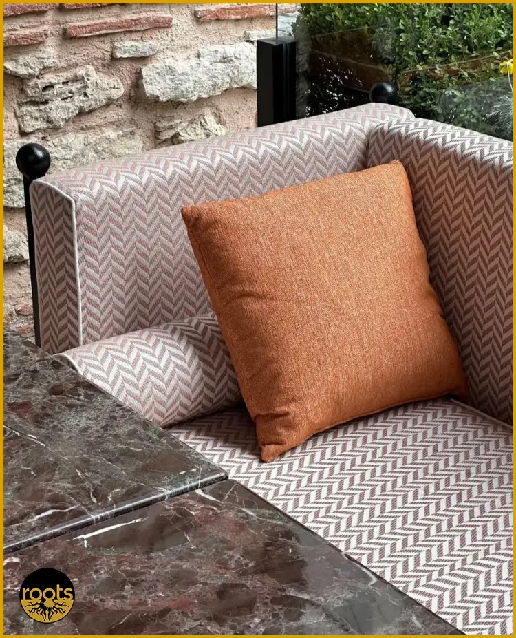 Dış mekanlarda suya, güneşe ve neme dayanıklı mobilyalar tercih edilmelidir. Rattan, alüminyum ve galvanizli metal ürünler uzun ömürlü kullanım sağlar. Ayrıca UV korumalı kumaş döşemeler güneşten etkilenmez.