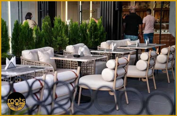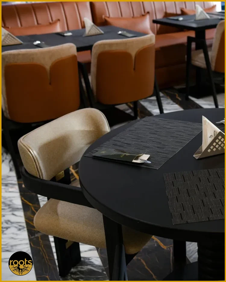 Restoran mobilyalarında genellikle ahşap, metal ve rattan malzemeler öne çıkar. İç mekanlarda sıcak bir atmosfer için ahşap, dış mekanlarda ise hava koşullarına dayanıklı alüminyum veya rattan tercih edilir.